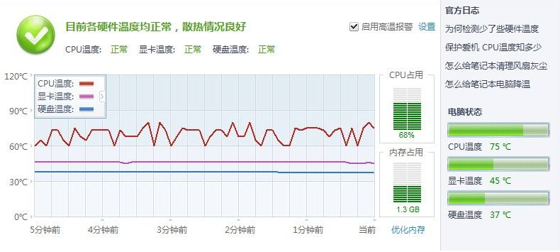 2、每个CPU的耐热温度都不同,一般来说CPU的耐热温度不超过70是不会影响使用的,在夏天天气热的时候CPU的温度会提升30-40度。