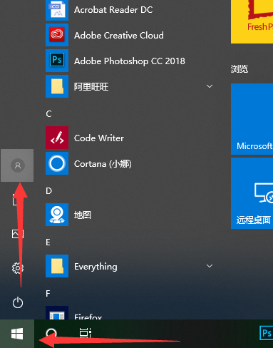 1.单击“开始”按钮,然后单击本地登录帐户的头像