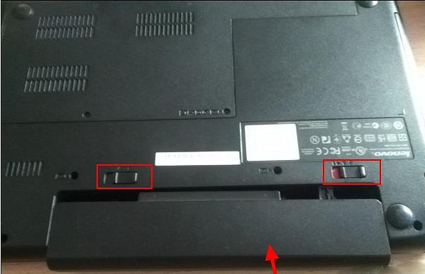 1.首先拔下笔记本电脑的电源,将笔记本电脑的背面朝上翻转,打开电池锁,然后取出电池。
