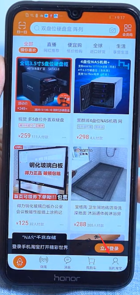 1、首先在手机上下载一个淘宝APP,然后打开淘宝,点击右下角的“我的淘宝”。