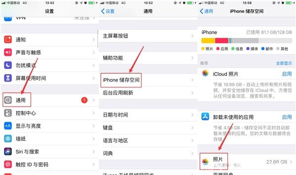 1、其实占用内存较大空间的一般是一些无用的图片,因为苹果手机像素还算好,所以拍出来的照片容量很高。点击设置--通用--iPhone储存空间--照片,进入里面后可以选择一些不要的图片进行清理。