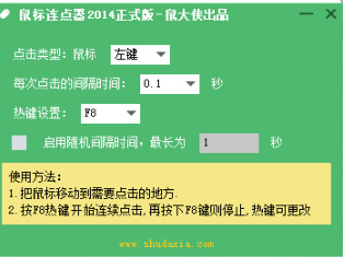 该鼠标连接器也相对简单,安全且绿色,设置时间间隔,选择该时间间隔,将瞄准器放置在要单击的位置,然后单击以开始。