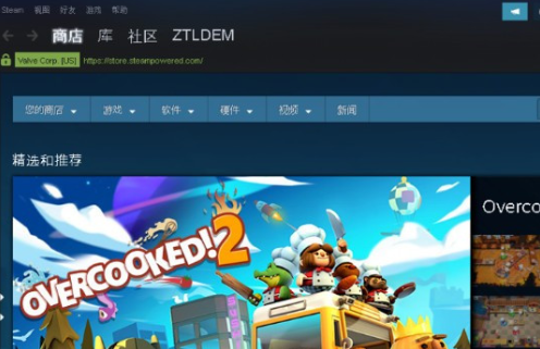 2.然后,在steam主屏幕中找到“库”功能,如下图所示: