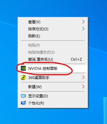 1、右键单击桌面,打开“NVIDIA控制面板”。