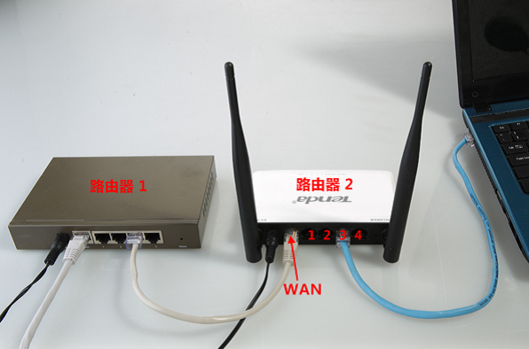 1.准备两根网络电缆,一端连接到主路由器上的任何LAN(1/2/3/4)接口,另一端连接到子路由器的WAN接口;另一端连接到第二个路由器一个LAN(1/2/3/4),另一端连接到计算机。