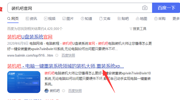 1、浏览器搜索【装机吧官网】,认准官网进入装机吧首页,就可以直接下载装机吧工具啦。
