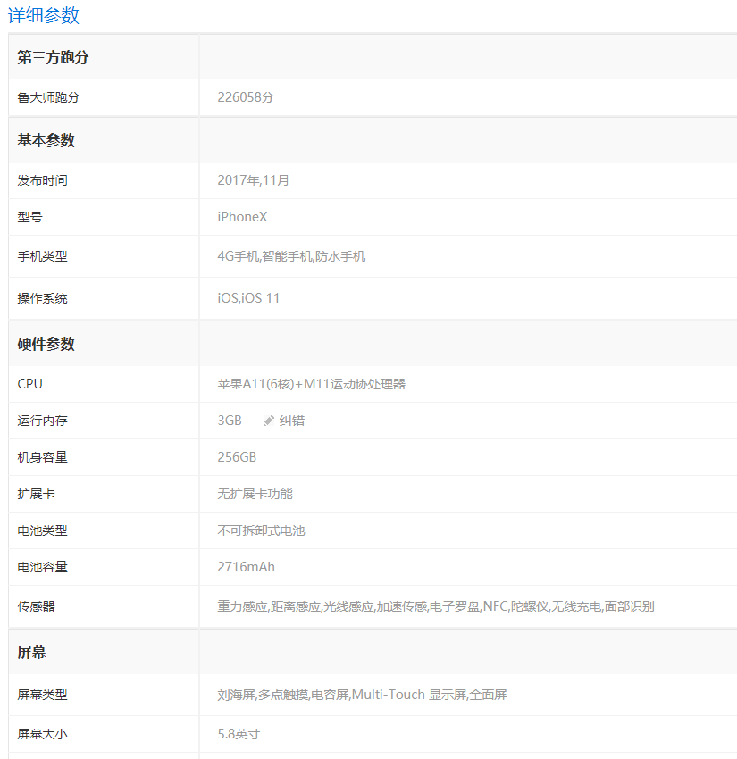 苹果X参数配置详细如图: