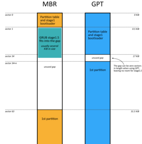 3、MBR最大支持2TB磁盘,它无法处理大于2TB容量的磁盘。MBR支持最多4个主分区——如果想要更多分区,就需要创建所谓“扩展分区”,并在其中创建逻辑分区。MBR已经成为磁盘分区和启动的工业标准。