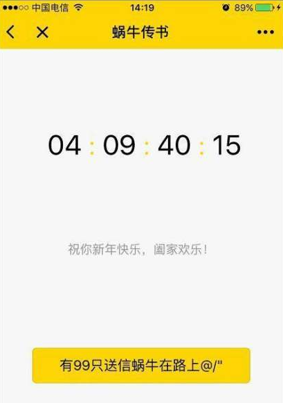 蜗牛传书小程序,你可以利用它给你的微信定时,让你在指定时间给对方发送消息。这款小程序的使用场景有很多种,比如生日祝福呀。用这款小程序可以制作很特别的新年祝福发给对方,但是只有到了你定的时间,对方才能看到你想说的话。