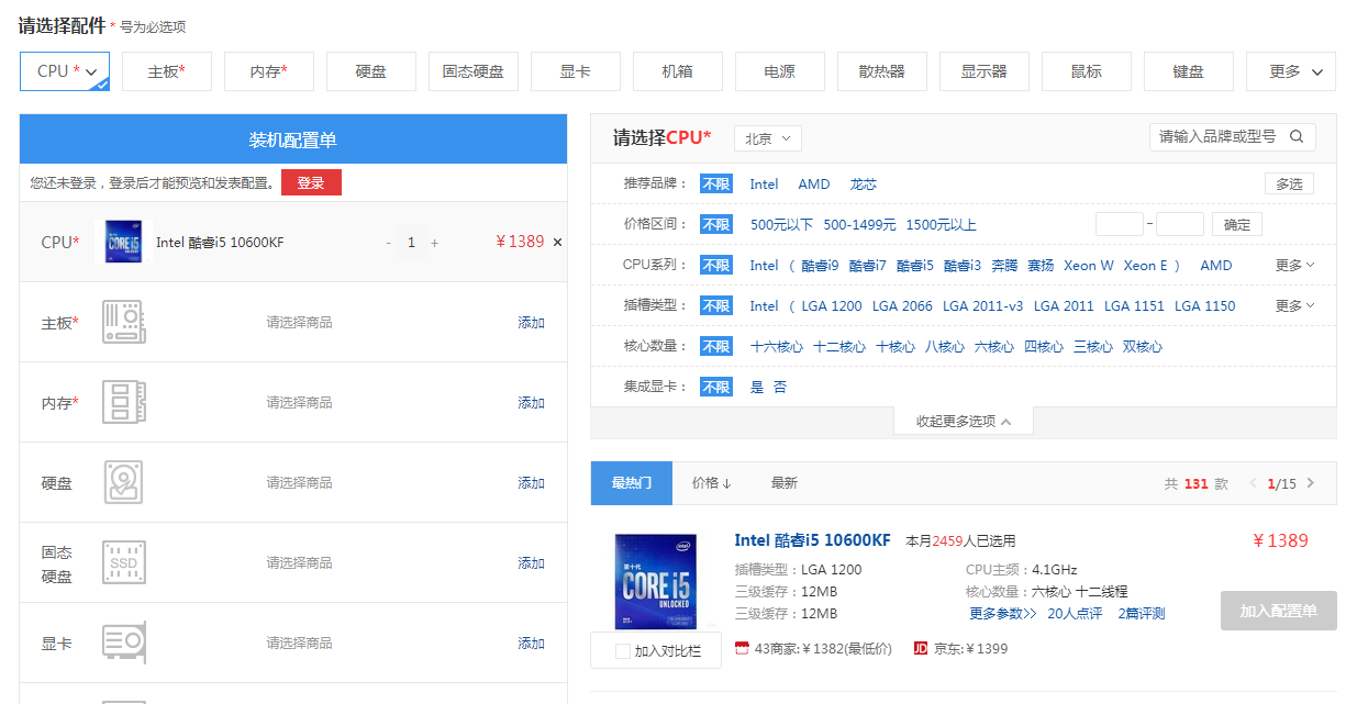 2、选择好您的电脑中需要的相关配置后,您就可以实时的看到自己的装机配置单。而且在右侧的对应列表中均提供了大量的可选硬件配置,还是非常方便的。