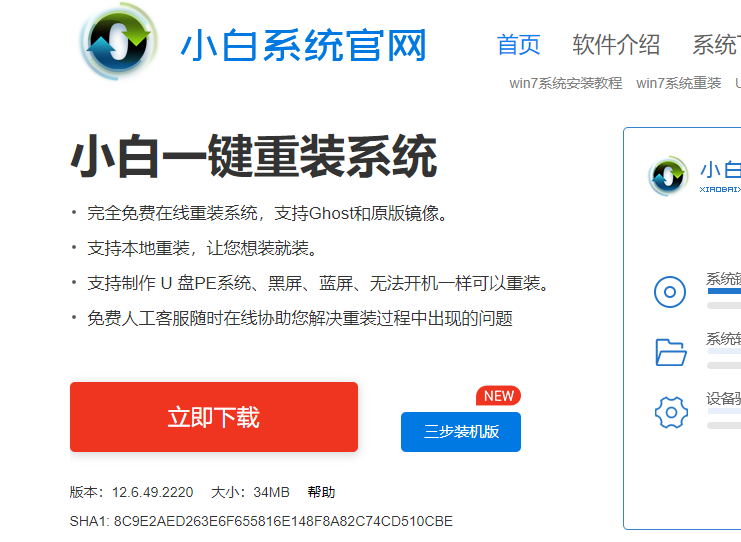 1、首先,到小白官网下载小白一键重装系统软件,并将u盘插入电脑。
