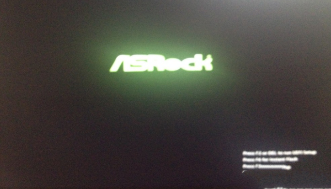 开启电脑后当看到开机画面的时候,连续按下键盘上的"F11"键,如下图所示:为华擎主板组装电脑开机的画面。