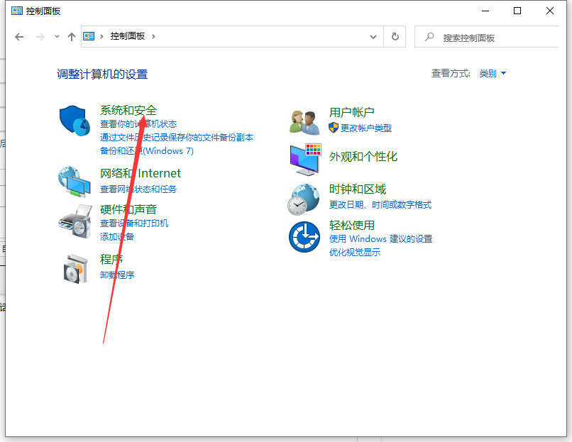 1、我们先打开控制面板,然后进入之后打开“系统和安全”。