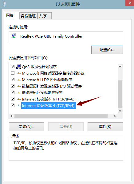 2、第一台电脑的设置步骤如下:打开网络和共享中心 ,点击更改设配器设置,在以太网那里右键属性, 双击Internet 协议版本4(TCP/IPv4)