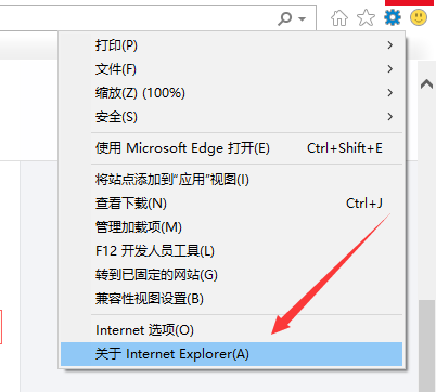 1、打开ie,点击右上角的齿轮,点击关于Internet Explorer。