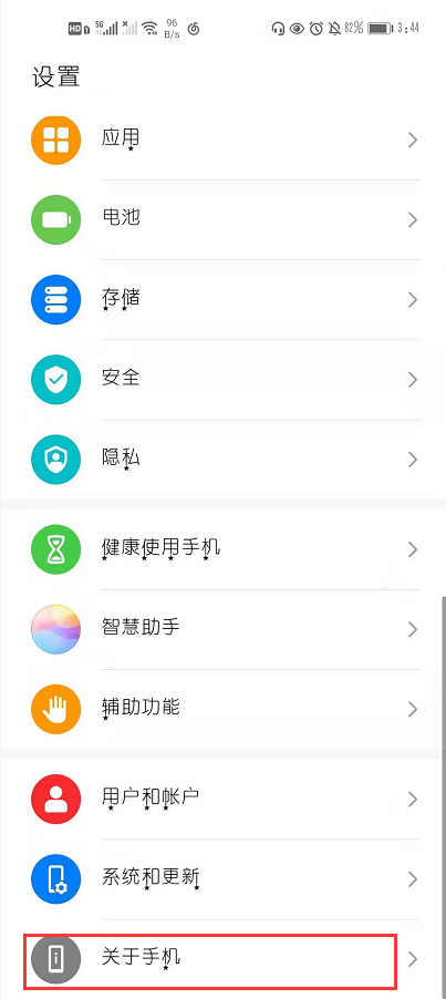 1、首先我们用usb数据线将手机跟电脑连接起来。然后在手机打开设置,滑到最下面的点击关于手机。