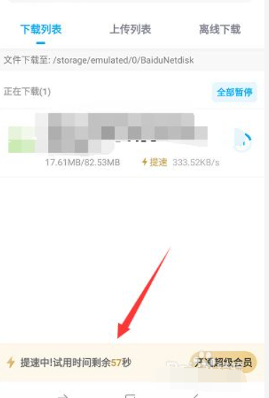1、打开百度网盘下载文件,在下载过程中,我们可以看到下面会出现一个可以加速60秒的提示。我们领取使用就可以获得百度网盘60秒加速。