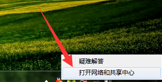 1、小编这里以win7系统为例说明,鼠标右键桌面任务栏右侧的“网络”图标,选择“网络和共享中心”打开。