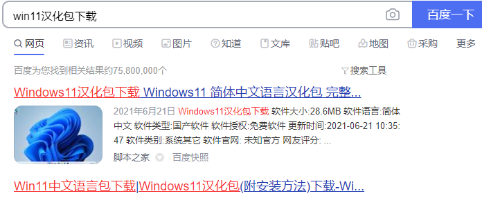 1、可以直接在网上搜索win11汉化包下载,即可找到对应的可靠的下载站进行下载即可。