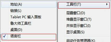 如果方法一不管用的话,那就用鼠标在任务栏任一空白处单击一下右键,然后选择“工具栏——语言栏”即可。