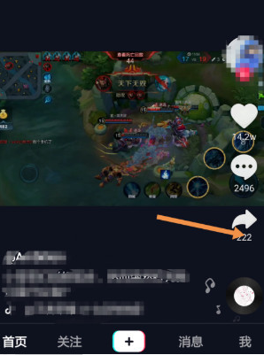 1、打开抖音后,先找到一个自己想要合拍的视频,点击分享。