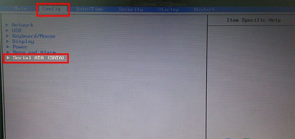 1.重新启动电脑或打开电脑,然后,当屏幕出现时,按相应的快捷键,进入bios设置窗口,利用键盘上的方向键选择"Config"选项,然后选择"Serial"(ATA)",按回车键确认。