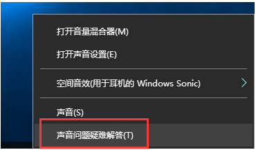 1.右键单击Win10系统托盘图标中的声音图标,选择声音问题难以解决选项。