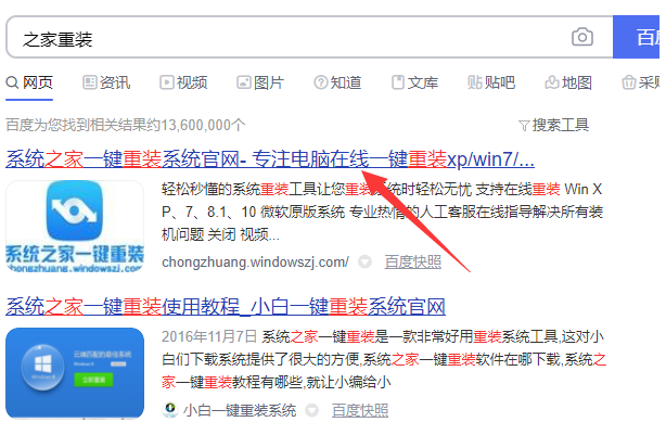 1、浏览器搜索之家重装,点击系统之家一键重装网站进入,进入后即可下载U盘装系统工具。