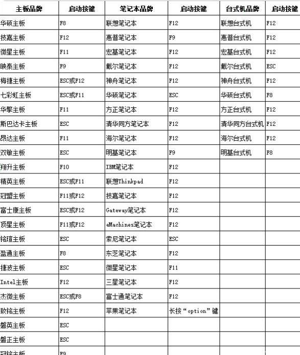 1.为了方便大家,小编给大家分享一张U盘启动快捷键的图。