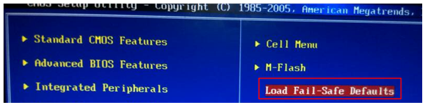 2.进入bios设置界面之后,选择"LoadFail-safedefaults"选项回车,表示bios默认值。