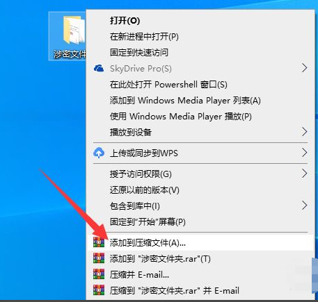 1.首先,将需要设置密码保护的文件放置到一个文件夹中,右击此文件夹,从弹出的右键菜单中选择“添加到压缩文件”。
