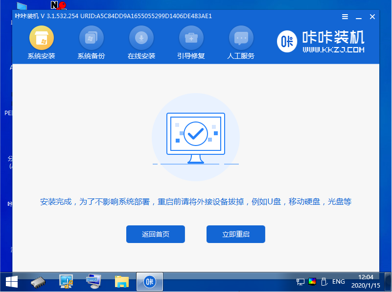 5、等待软件自动安装系统完成后,拔出U盘重启电脑,进入系统桌面,安装完成。