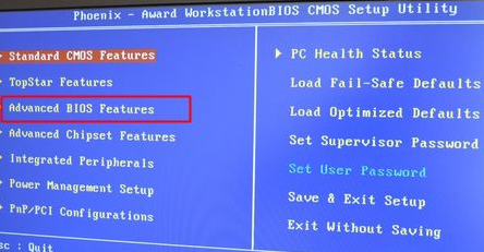 2、如果是以下这种界面,按方向键选择Advanced BIOS Features回车;