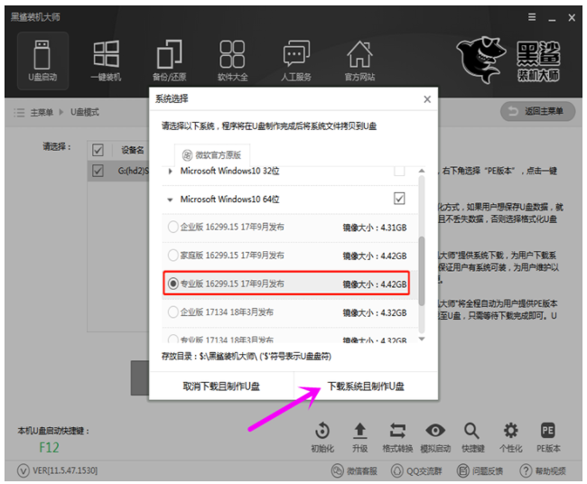 3、然后在系统镜像的选择界面,选择Win10系统,然后点击“下载系统且制作U盘”。