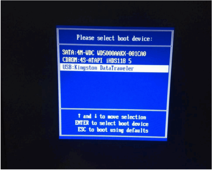 1.首先我们重启电脑,不间断按F12键,会弹出“启动设备菜单窗口”,当我们插入了U盘启动盘,会自动显示usb key ,只要选中usb key 按下回车键,就可以进入U盘启动模式了。