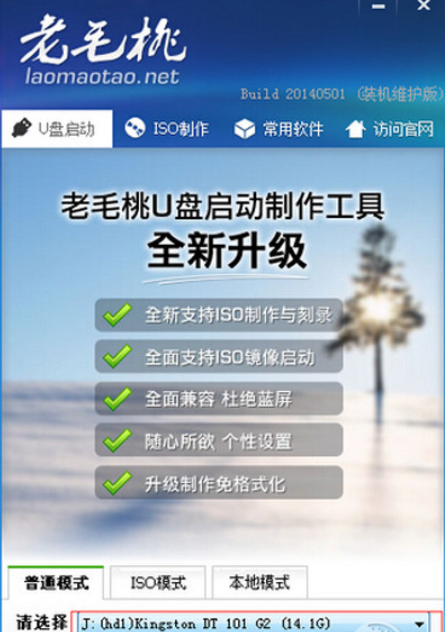 软件版本:老毛桃u盘20140501