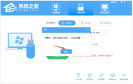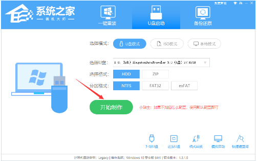 1、打开系统之家,选择【U盘启动】,默认格式,点击开始制作。
