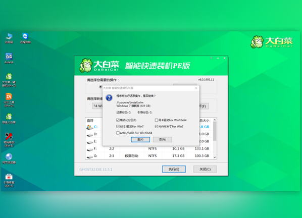 步骤一:1、电脑插入U盘之后,点击打开大白菜U盘制作工具,然后选择“是”在线上下载组件,组件更新成功后点击“一键制作成USB启动盘”就可以了。
