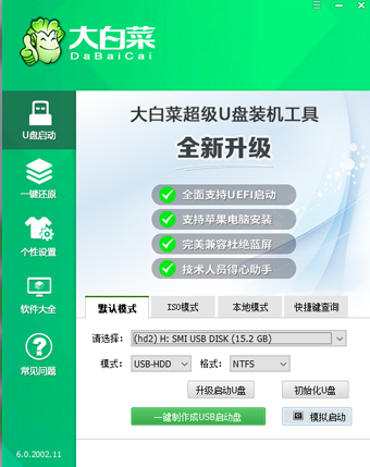 与之前版本不同,现如今新版的u深度u盘启动盘制作工具推出一项新技术――智能模式,通过此模式可为您只智能判断当前所插入的u盘以及操作系统制作出最适合您使用的u盘启动盘,无需在为如何制作以及制作怎样要求的u盘启动盘而烦恼。