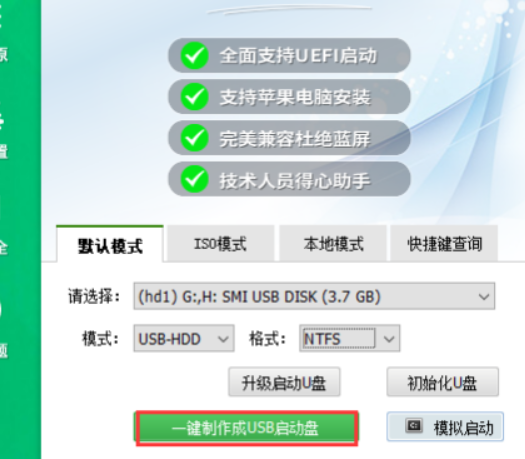 3.点击USB-HDD和NTFS,一键制作USB启动盘。