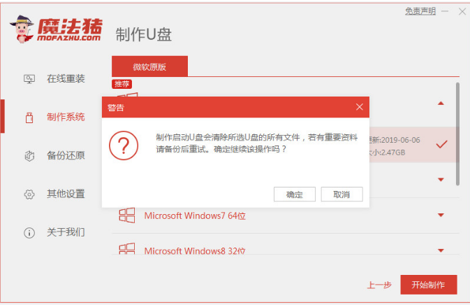 2、选择我们需要制作的win7系统,点击开始制作。