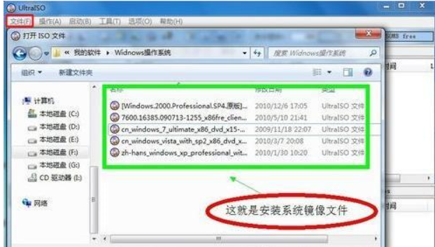 2.接着鼠标点击文件选择打开,选择我们需要的系统镜像文件,点击打开。