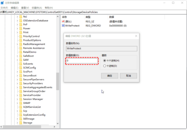 方法二、通过编辑注册表删除写保护