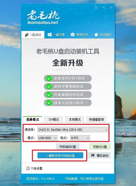 软件版本:老毛桃U盘启动盘制作工具 V9.5.2109