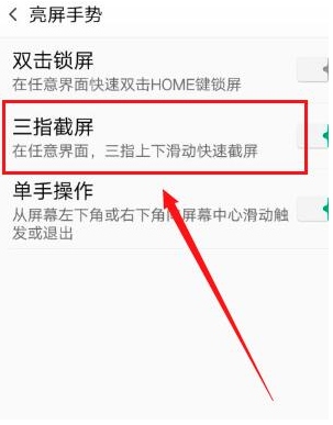 3、然后打开【三指截屏】功能,使用三根手指从上到下划过屏幕即可实现截屏。
