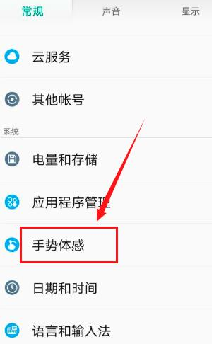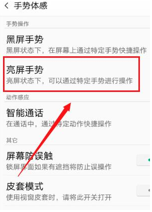 2、接着在手势体感界面中点击“亮屏手势”。