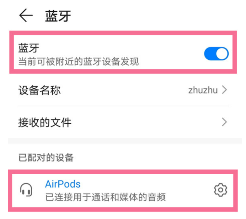 2、在手机设置中点击蓝牙,开启蓝牙开关,在列表中点击耳机名称即可连接。