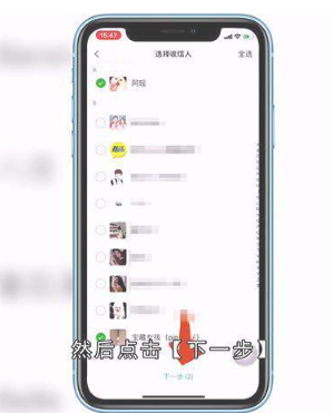 4、选择界面底部的【新建群发】,选择好要群发信息的收信人,点击下一步