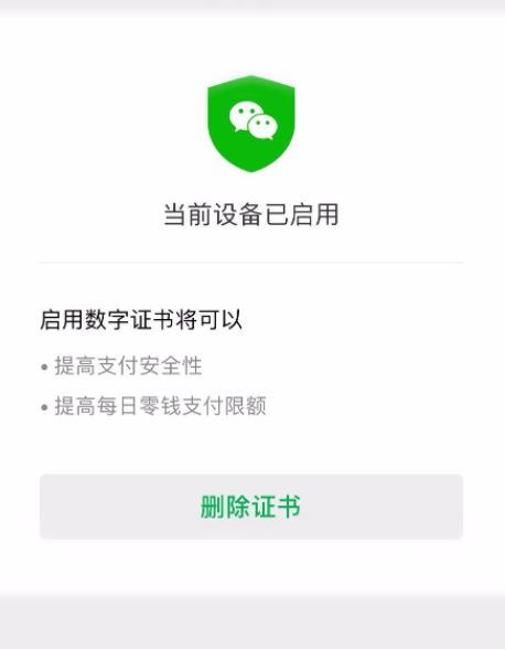 7.验证通过后,数字证书就会启用成功的。解除微信支付限额就完成了。