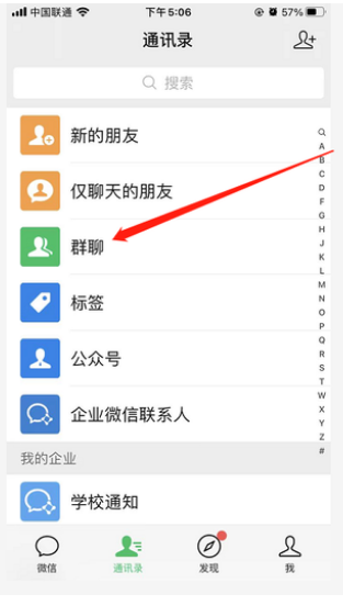 1、打开微信,选择群聊